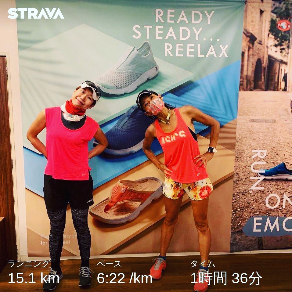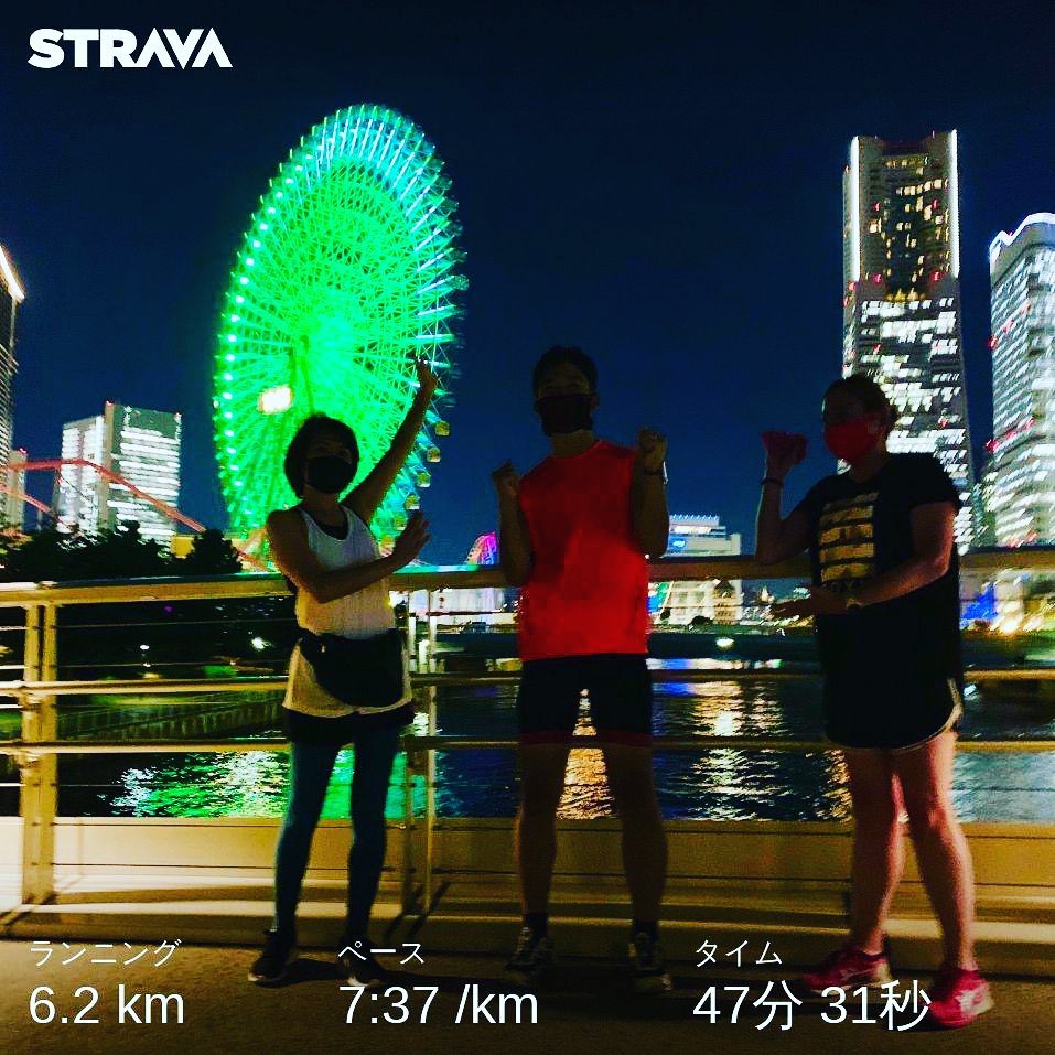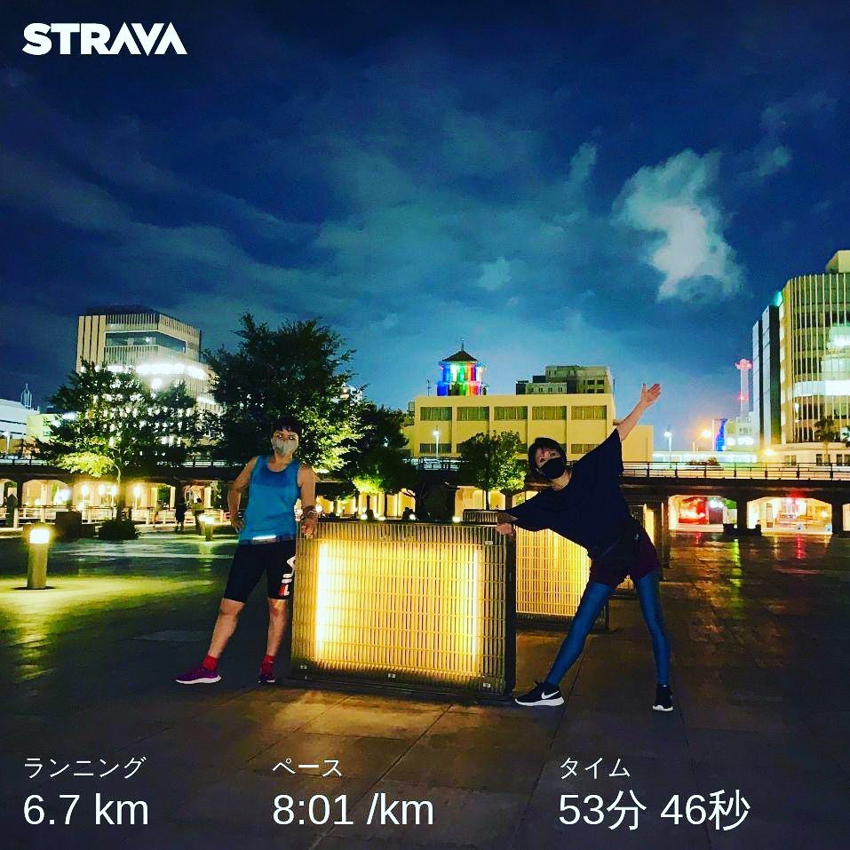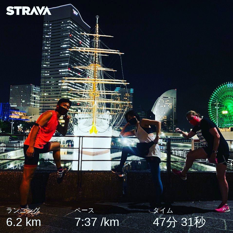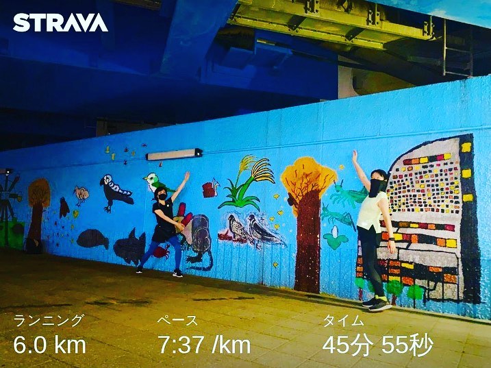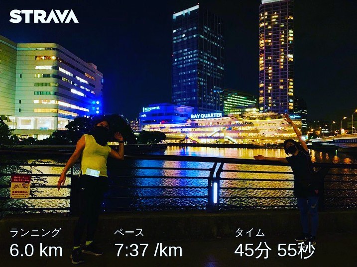 湿度が高くて暑い夜でしたが、ゆっくりおしゃべりしながら6㎞ランニング🏃♀️🏃♀️🏃♀️