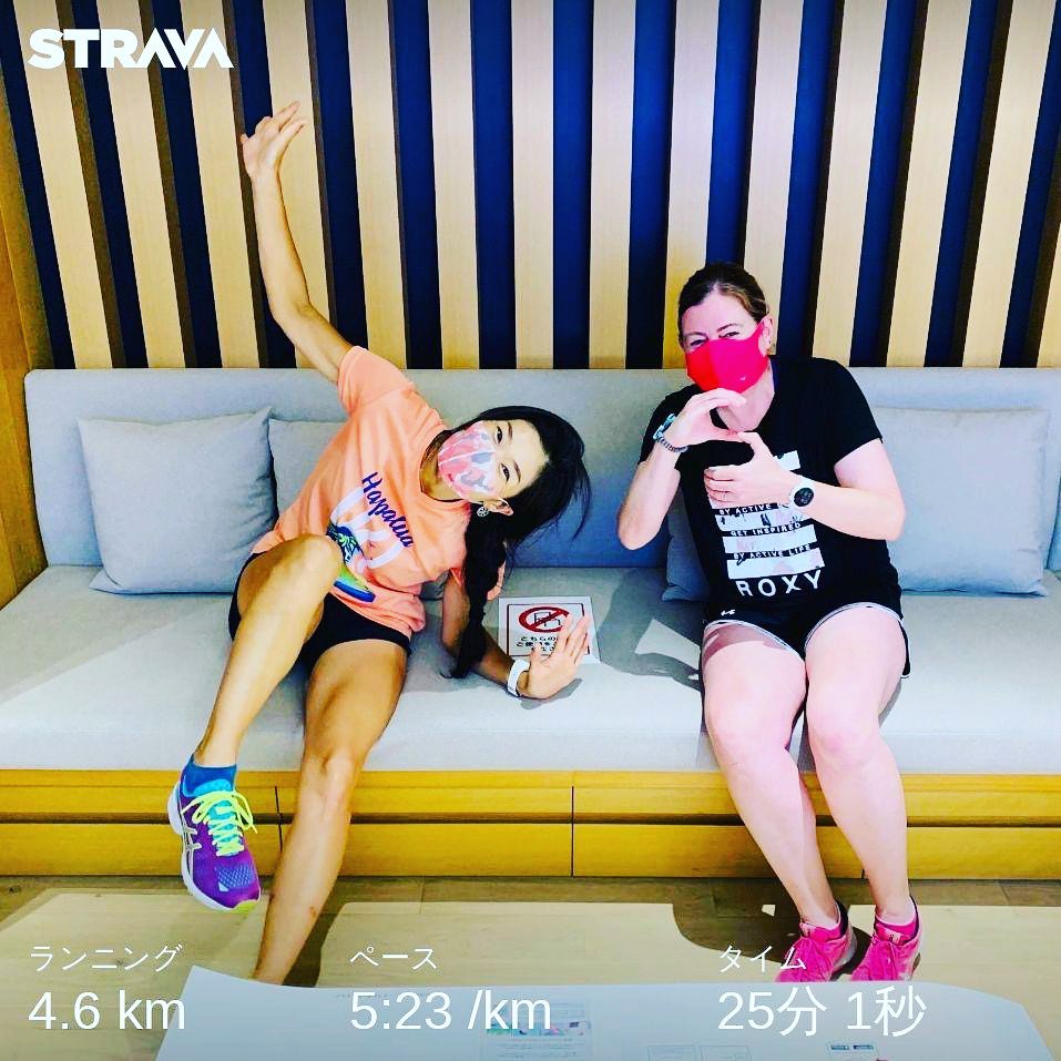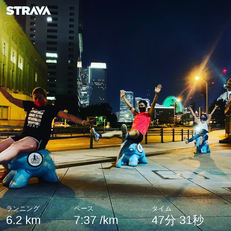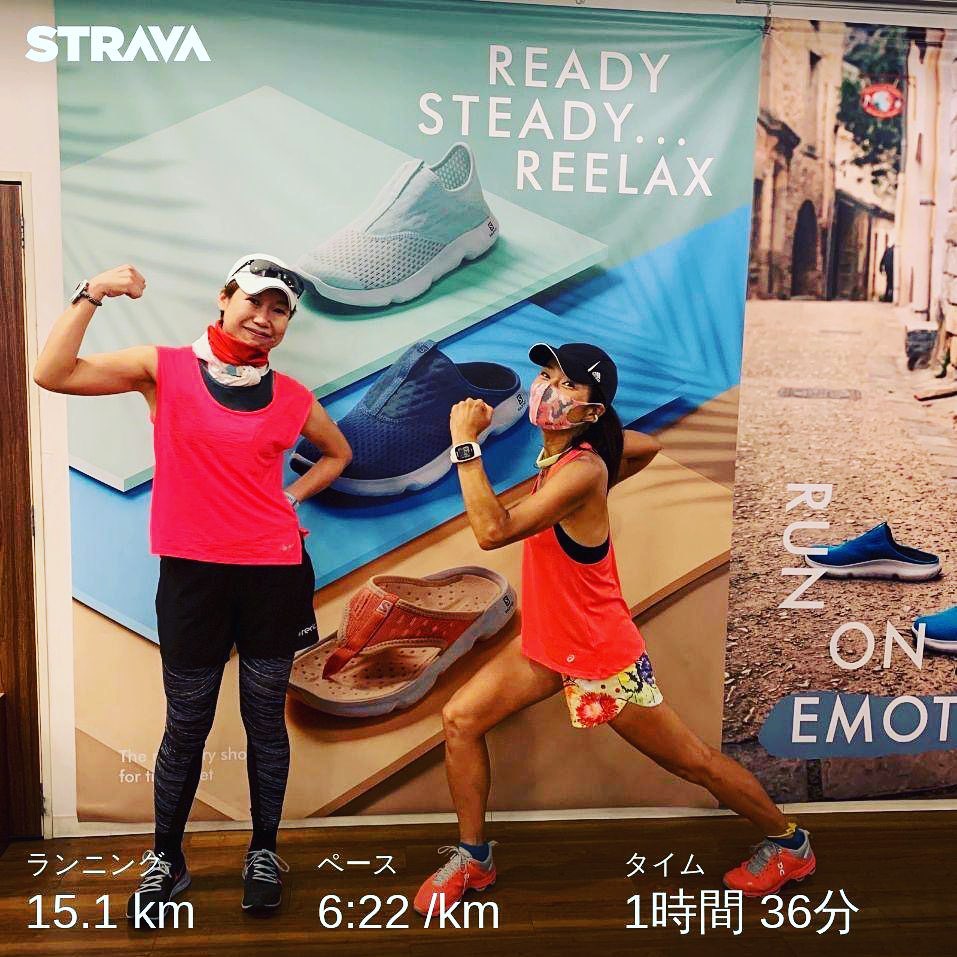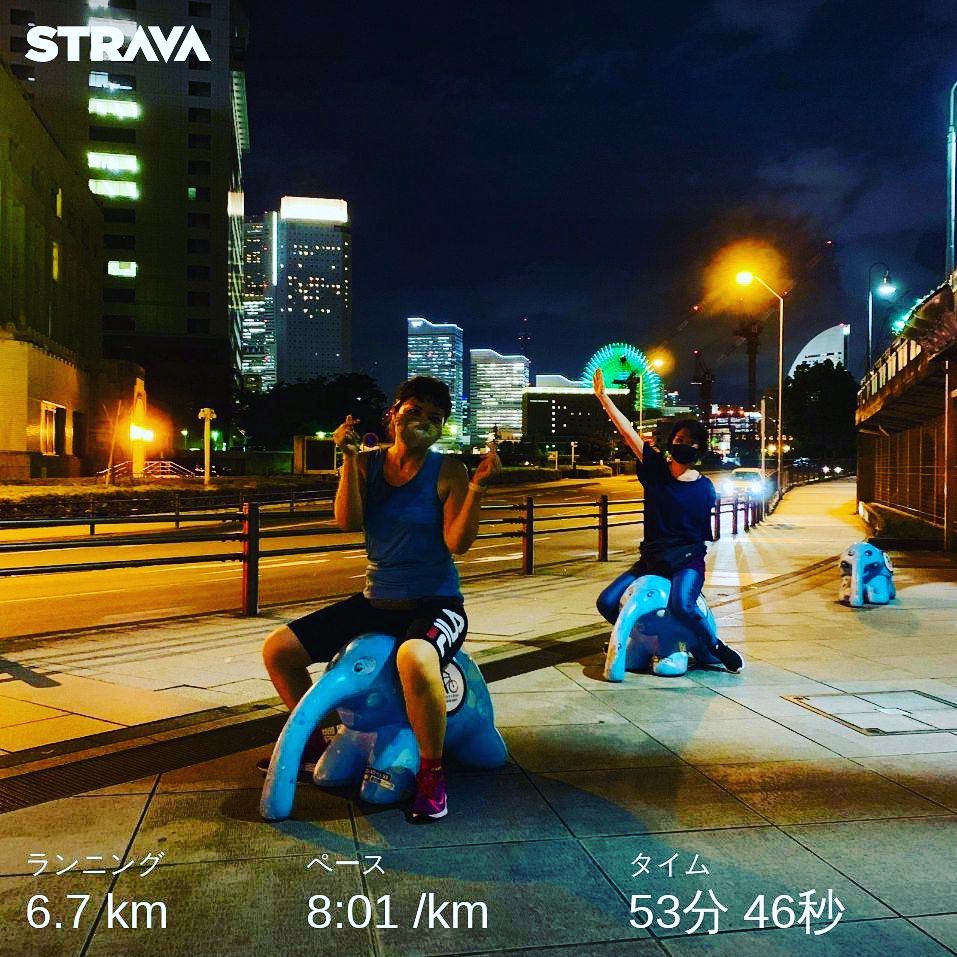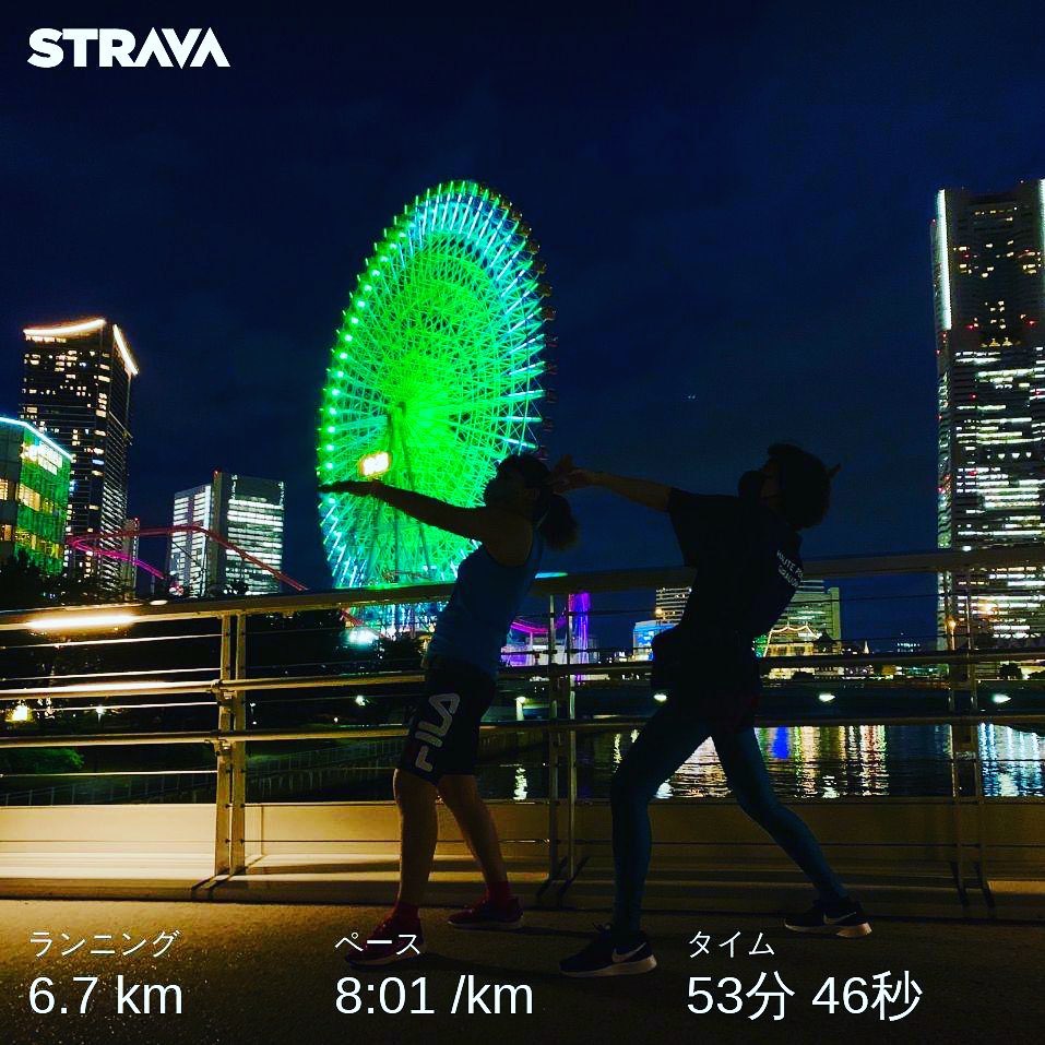 湿度が高くて暑い夜でしたが、ゆっくりおしゃべりしながら6㎞ランニング🏃♀️🏃♀️🏃♀️