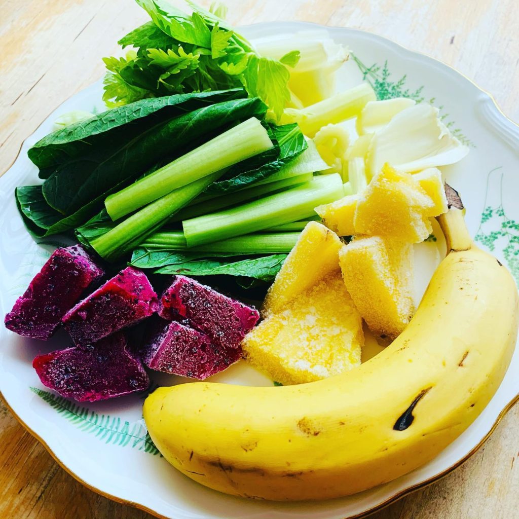 ドラゴンフルーツが入ると、色がとんでもなく変な色になるけど、気にしない💦