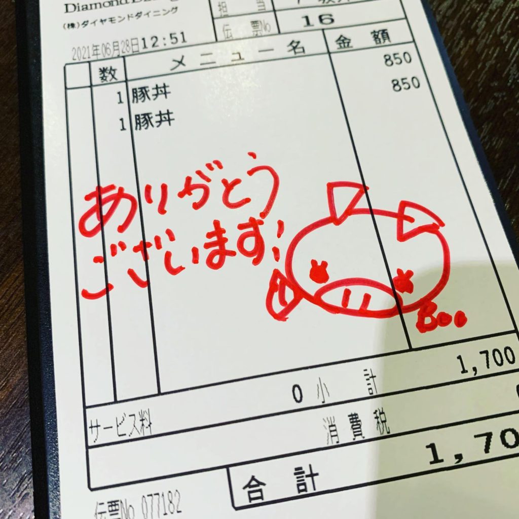 お昼に食べたベルサイユの豚ちゃんの豚イラストにほっこり🐖💕
