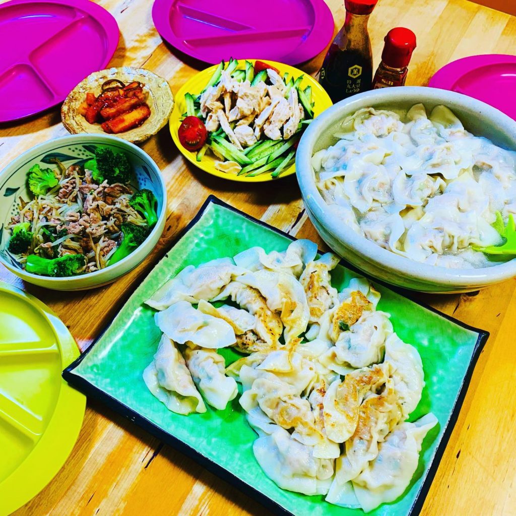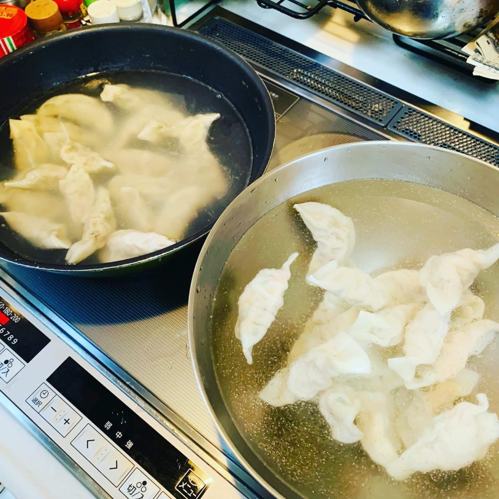 水餃子用の皮を探し求めて、たくさん作ったせいか、具が半分以上残っていたので、今日は私が皮を買い足して水餃子&焼き餃子。