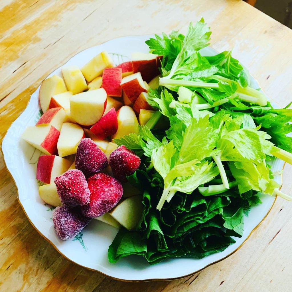 朝はいちご入りスムージー。
