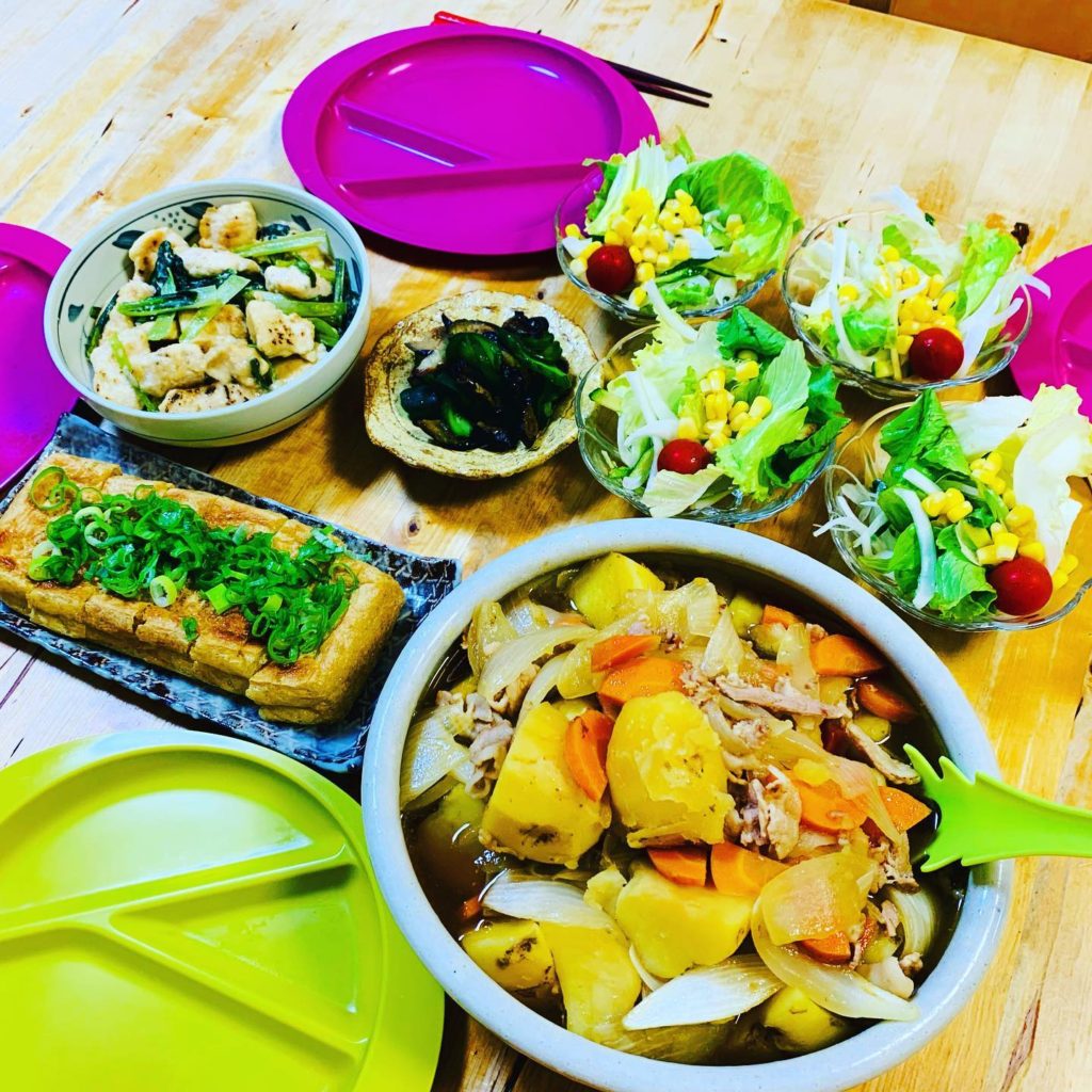 今夜は肉じゃがだけ作り足して、あとはほぼお残りさん。