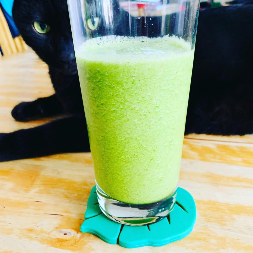 昨日の和風ハンバーグの残りの大葉でスムージー。