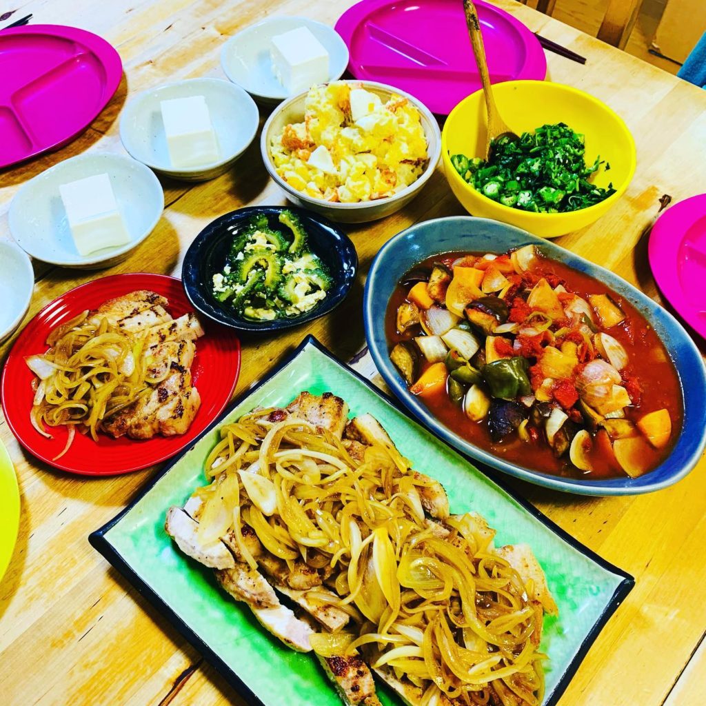 あとはラタトゥイユ、ポテトサラダ、モロヘイヤとオクラ、やっこ。