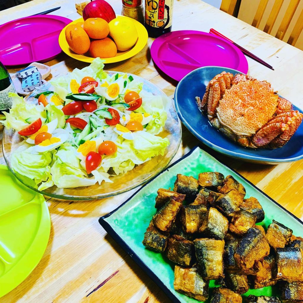 でも今夜は夫土産の毛ガニはあるし、サンマも6尾もあるし。