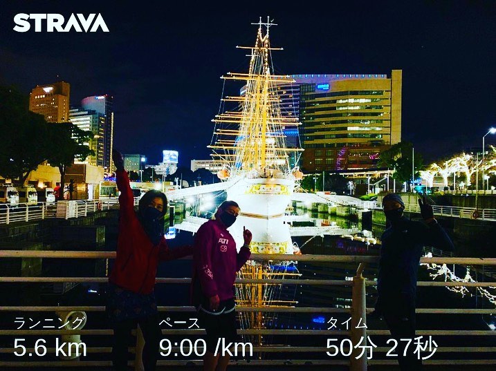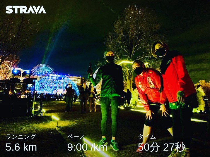 しっかり動的ストレッチで身体を温めてから、クリスマスまで続く横浜のイルミネーションを目指して元気に出発しました✨