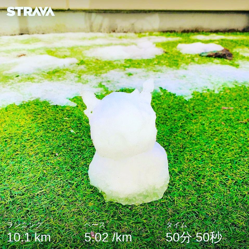帰宅すると、長女がベランダに作った猫型雪だるまもほぼ溶けていた。