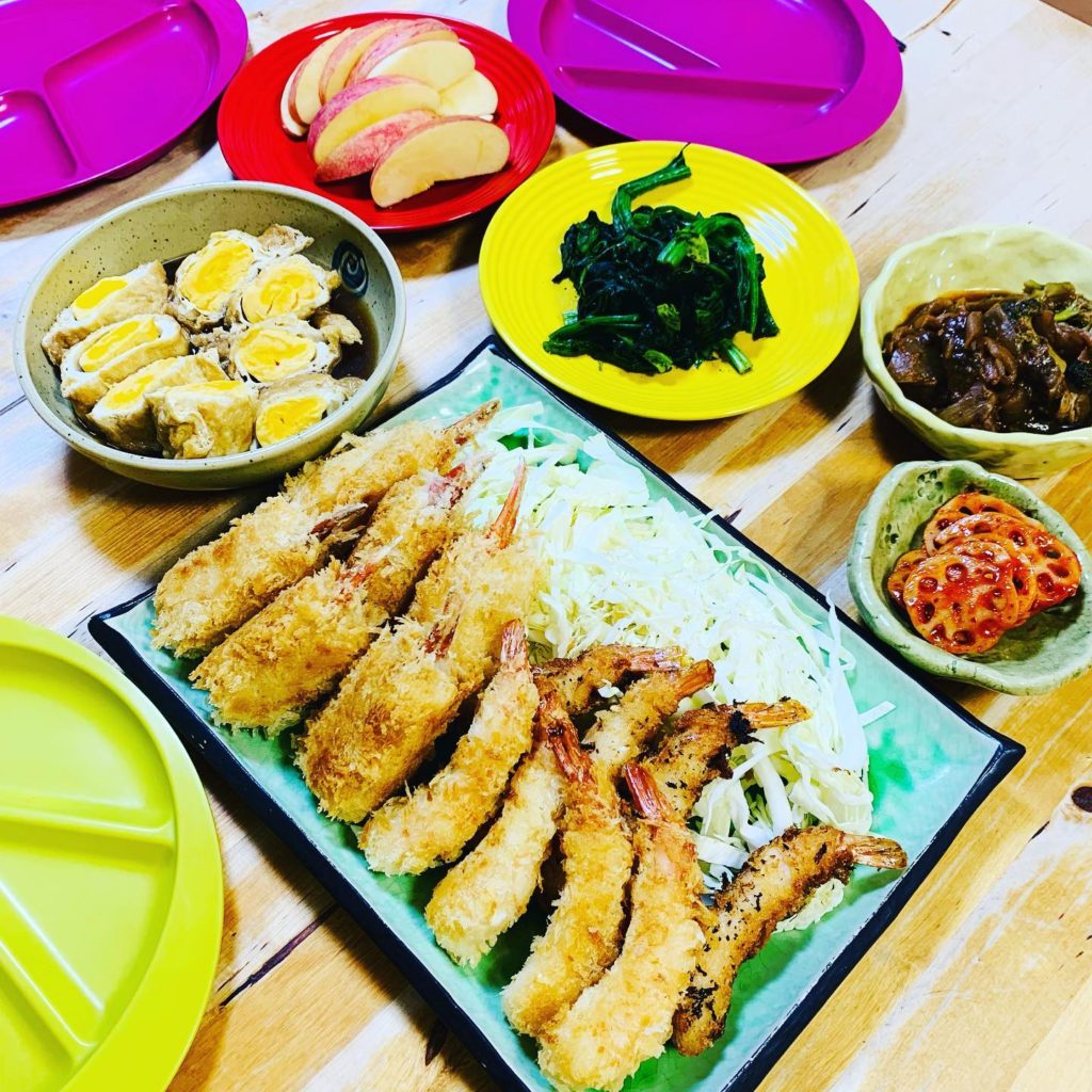 投稿日: 2022年1月11日2022年1月12日 投稿者: yuko_suzukiアスリート飯:エビちゃん、カニちゃん エビフライとカニクリームコロッケ揚げた。昨日の鍋の残り物、油揚げで巣ごもり卵。今日は朝も早くから、忙しかったなー。寒いし🥶こんな時間まで仕事しちゃったよ🤣寝よ、寝よ。そしてくろべぇ、布団の中にコイコイ。