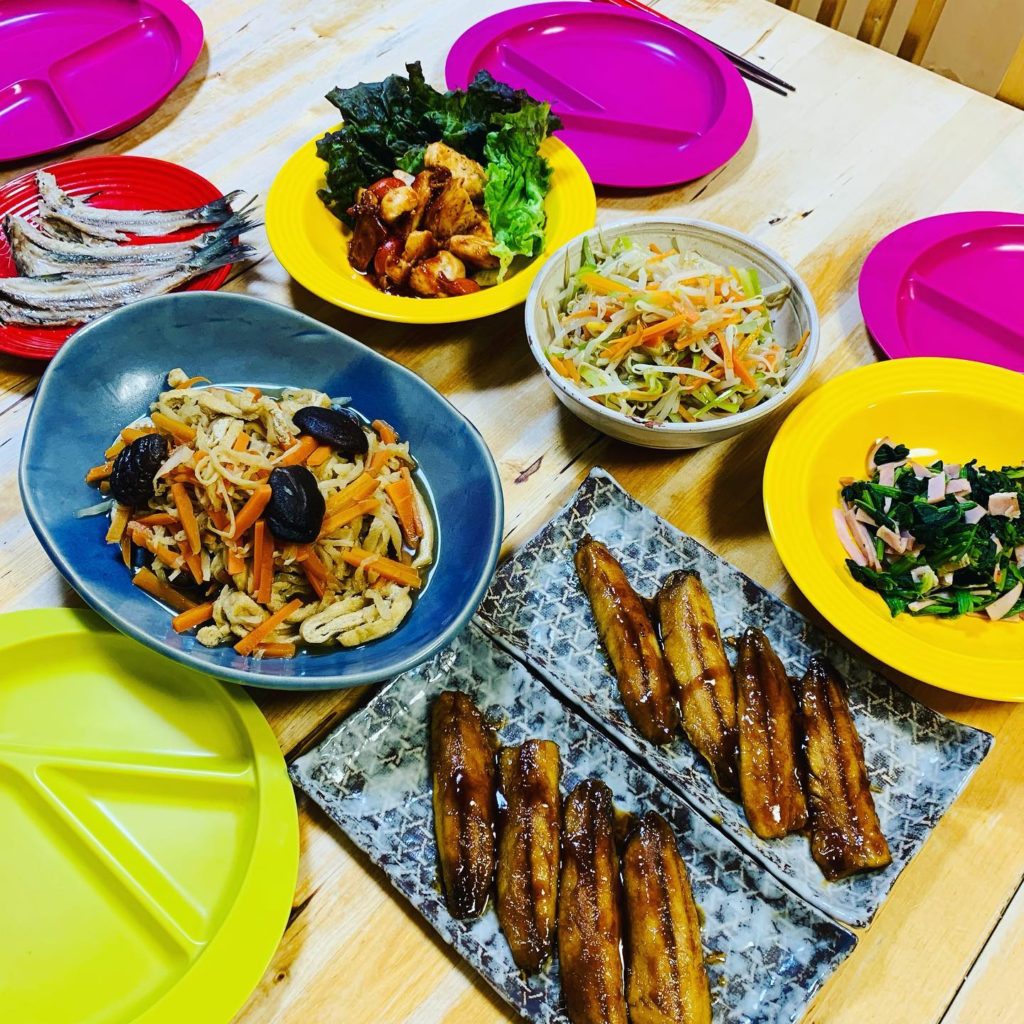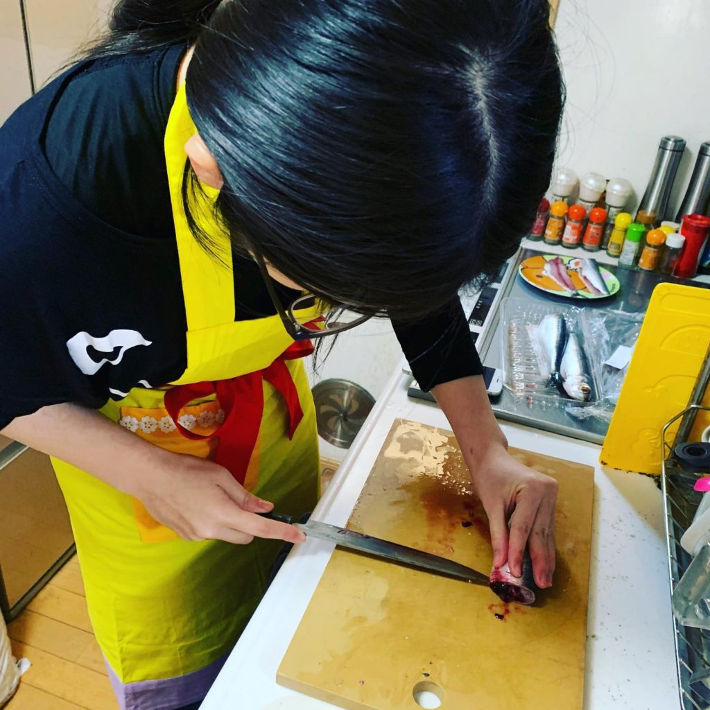 イワシを捌くのは長女に任せ、私はそれを蒲焼きにして。
