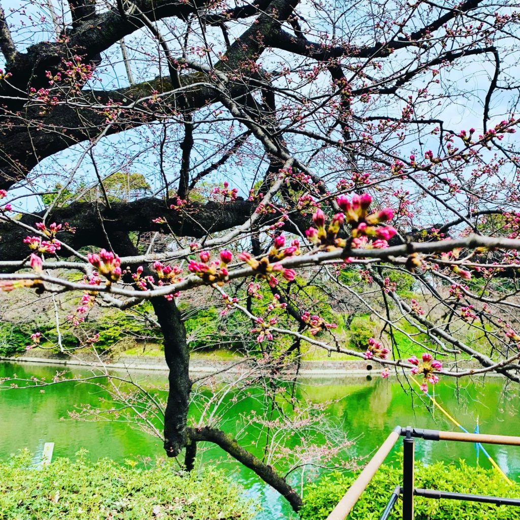 試し履きを終えて、また千鳥ヶ淵緑道の案内所に戻ると、朝はまだつぼみだった桜が咲き始めていた🥰
