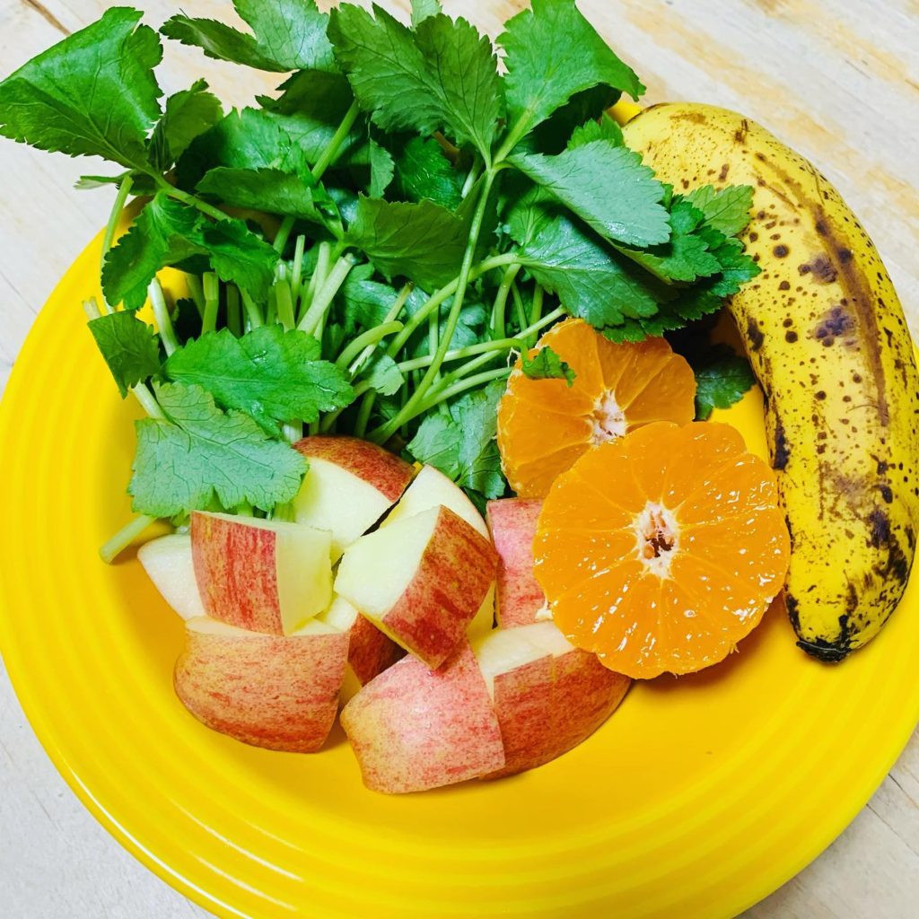 今朝のスムージーは初めて糸三つ葉を入れてみた。