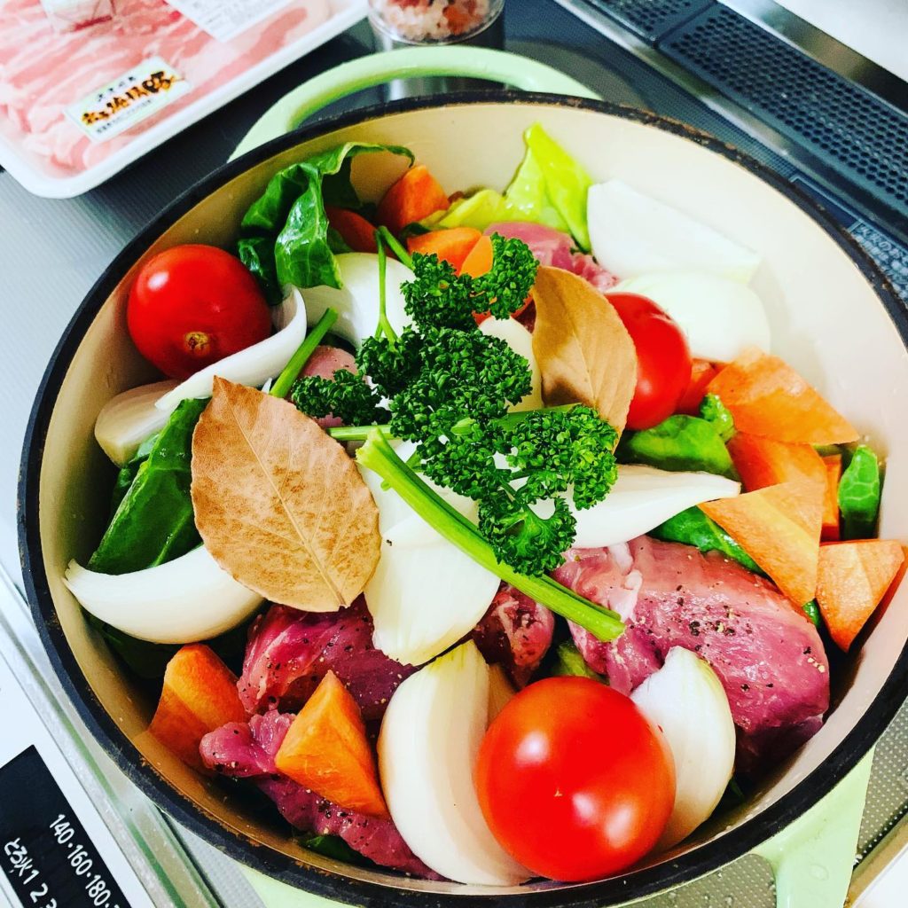 と思ったけれど、今日はヘルシーに春キャベツと一緒に蒸した。