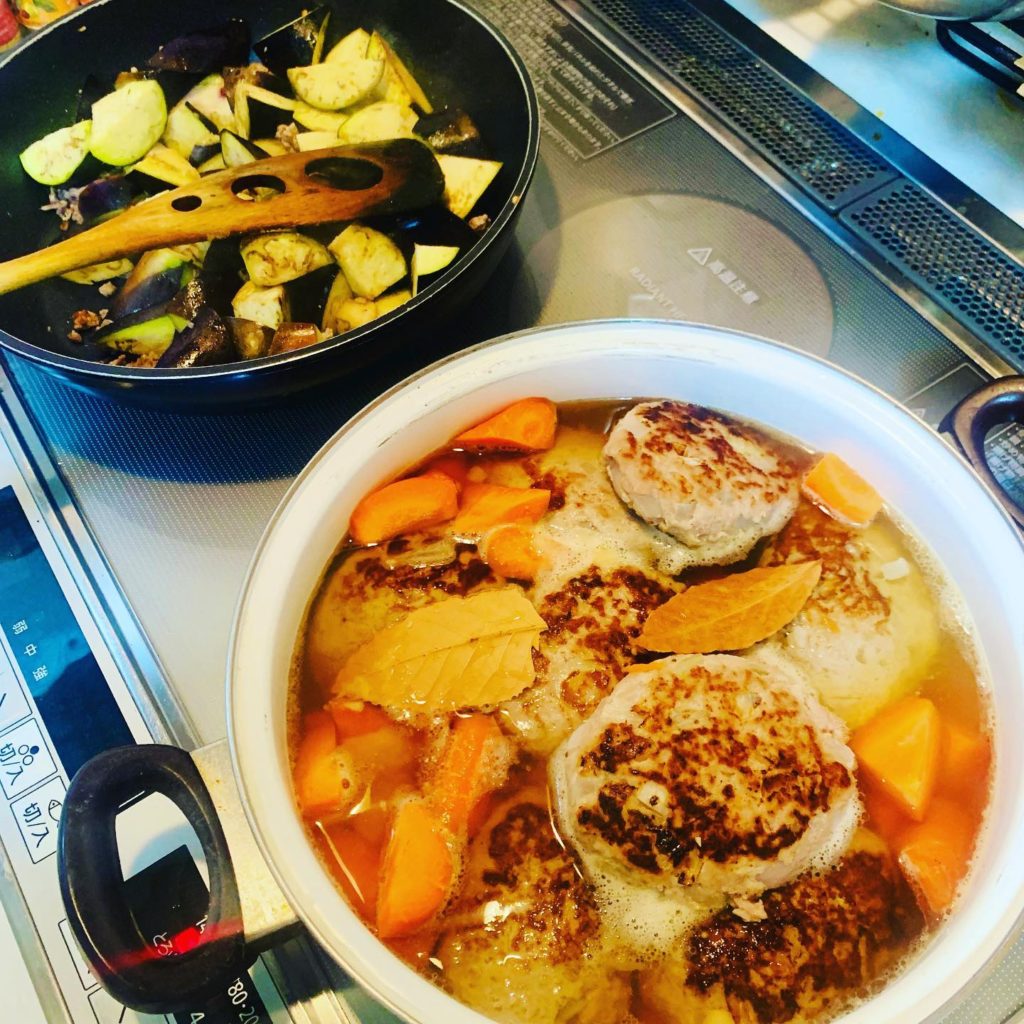 スープハンバーグと茄子味噌🍆