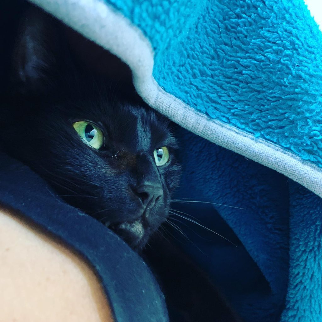 リビングでゴロンと寝ていたら、くろべぇが潜り込んできていた。