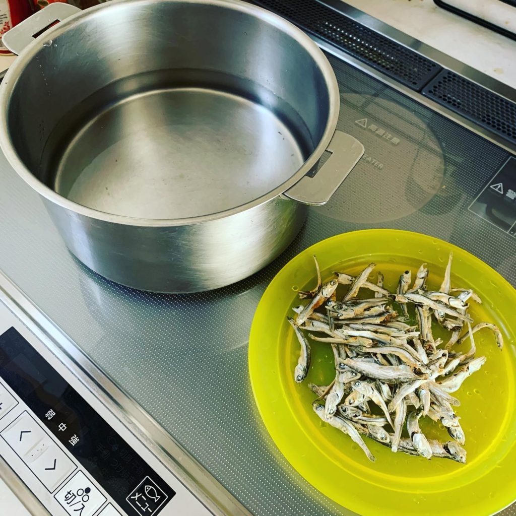 出汁は何でも良しとのことだったので、くろべぇも大好きだから煮干しで出汁を取ることに😊
