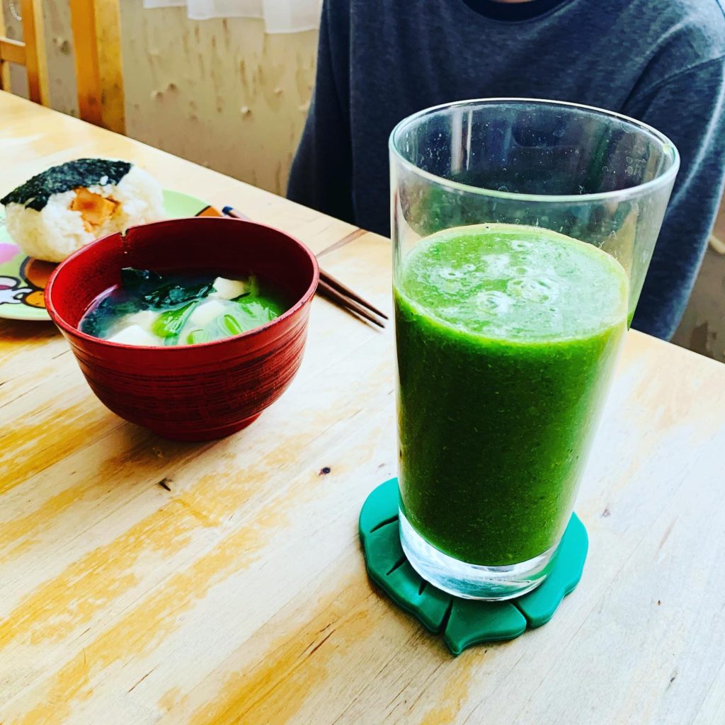 できたスムージーの写真も撮ろうと思ったけど、今日の定位置にはすでに早起きした次男もいて、