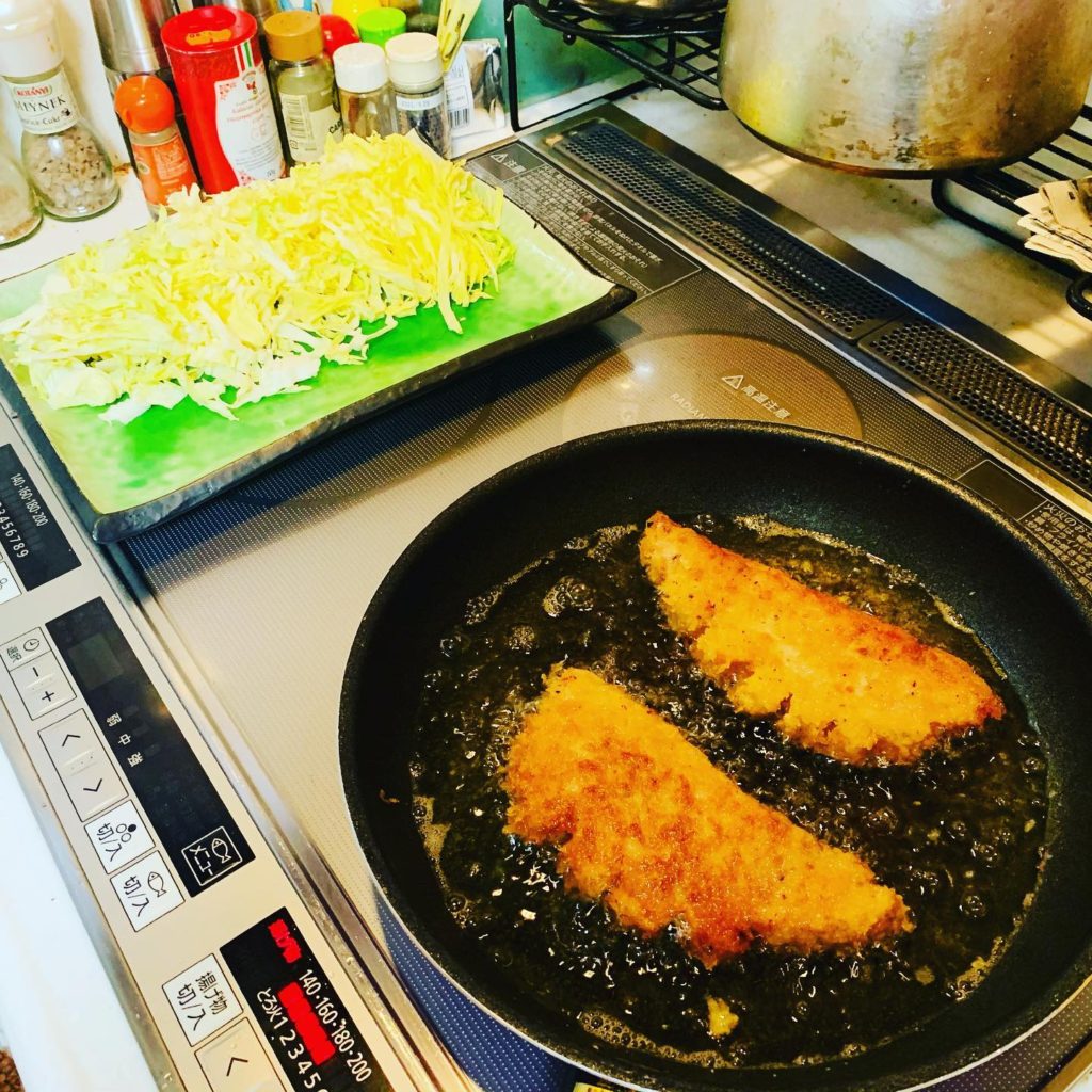 今日のご飯は次男リクエストの豚カツ〜🐖