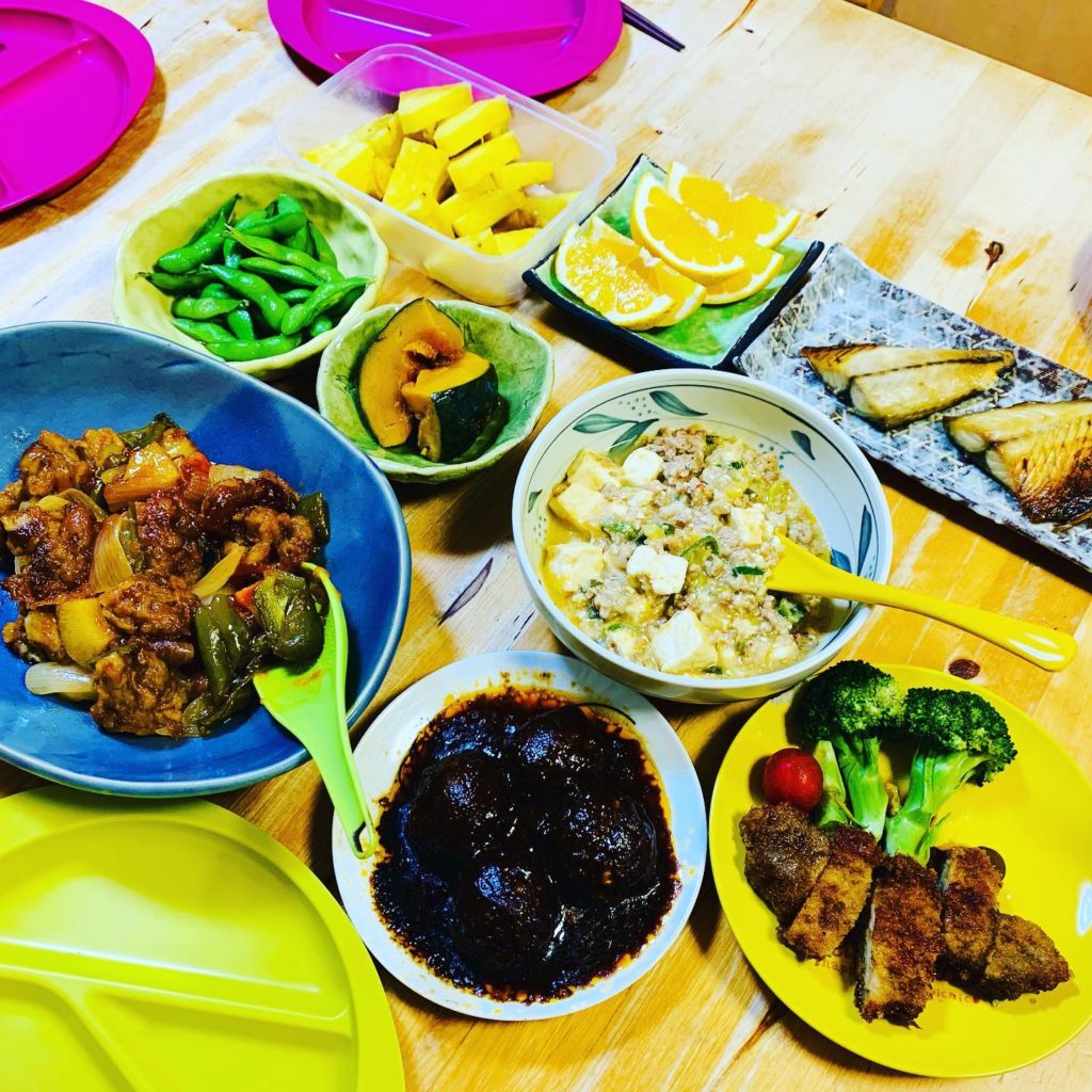 今日はいつもより帰宅が遅かったので、ぜんぶお残りさんの夕ご飯😅💦