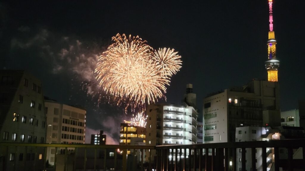 墨田区に住んで18年目だけど、実はこんな間近で隅田川の花火を見たのは初めて😳
