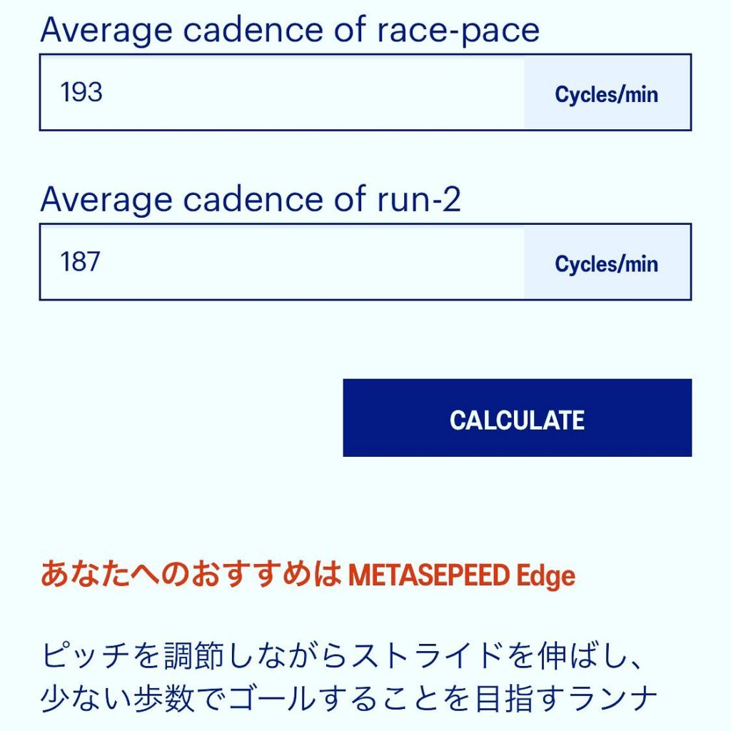 レースペースで1㎞、レースペースより30秒遅いペースで1㎞走って、それぞれのピッチ数から判定するらしい。