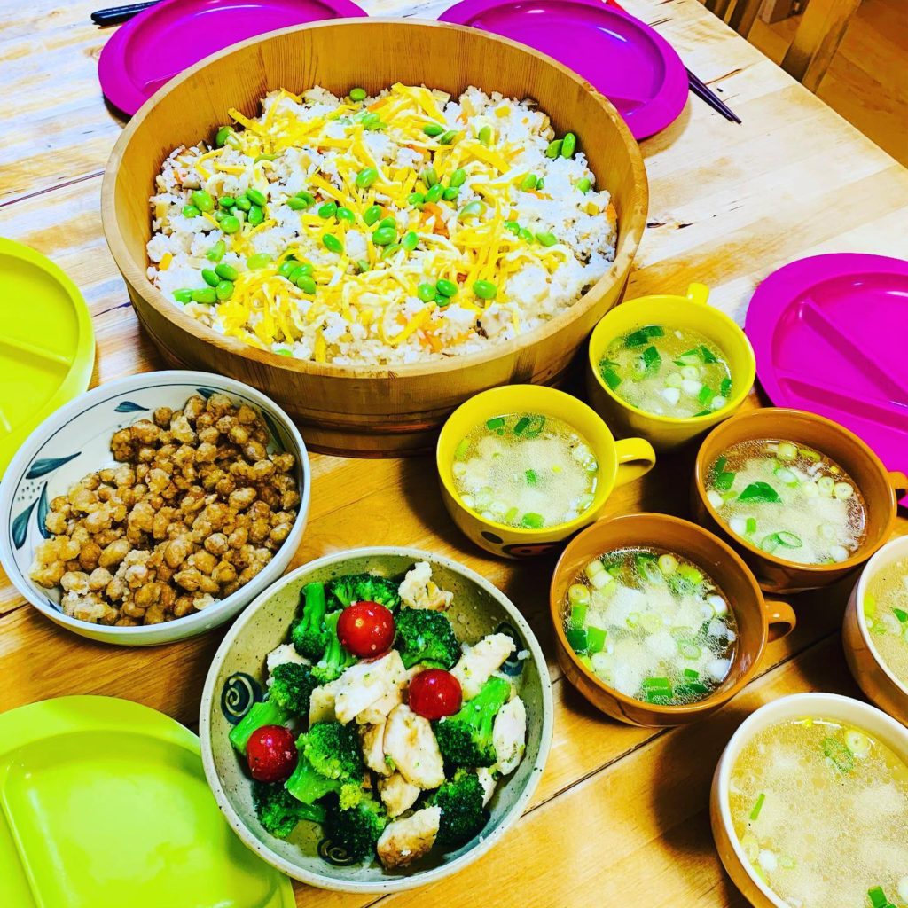 冷凍保存しておいたちらし寿司用に煮た具材を、朝のうちに冷蔵庫へ移動させ、酢飯用に炊飯器もセットしておいただけなんだ🤣