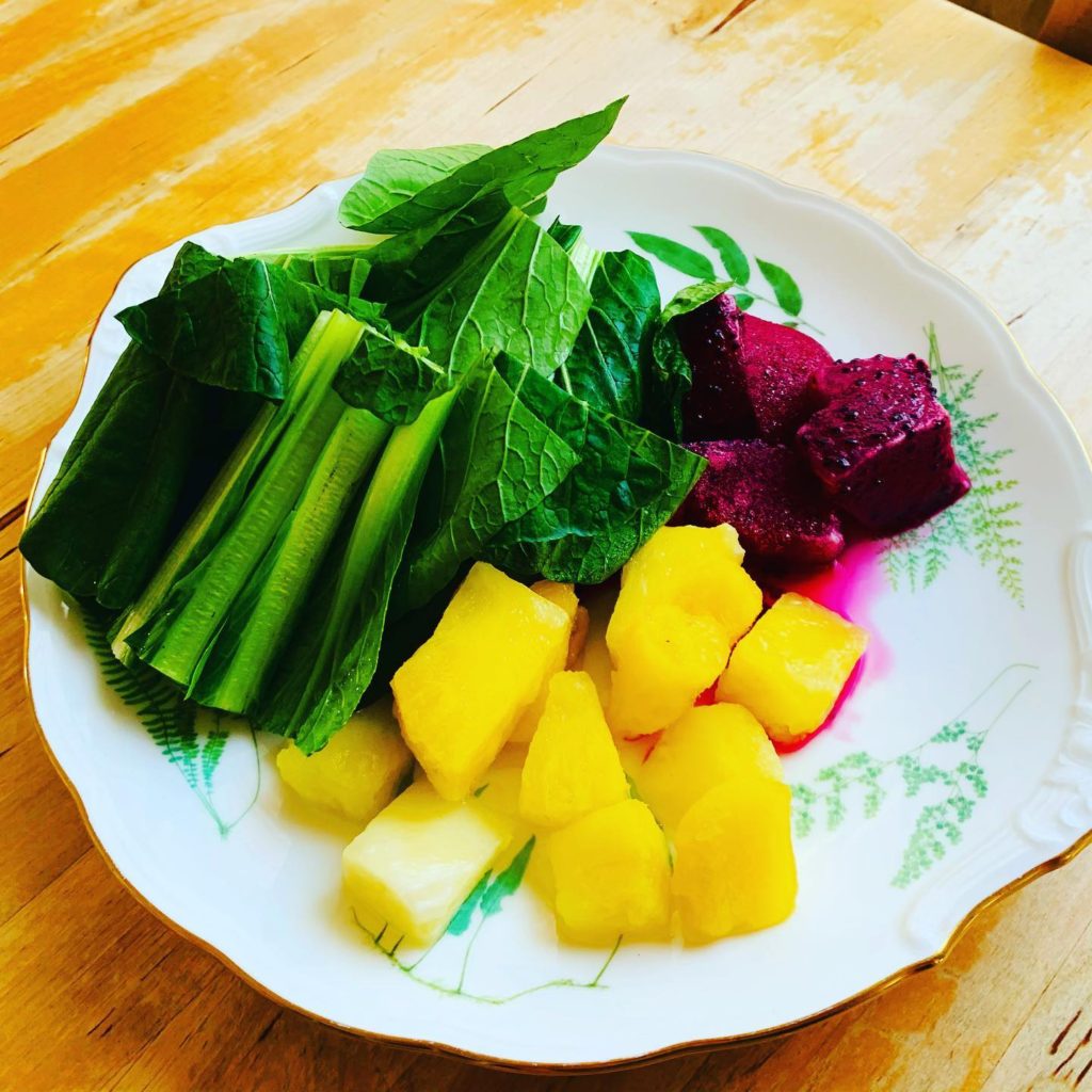 ドラゴンフルーツが入ると、色がとんでもなく変な色になるけど、気にしない💦